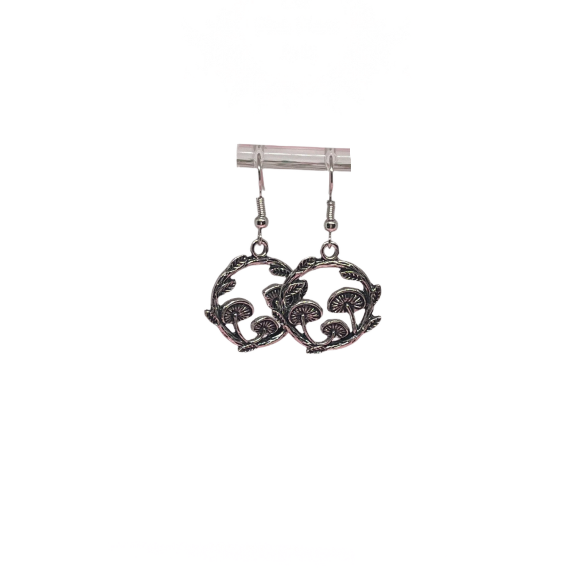 Silver Tone Mushroom Wreath Earrings